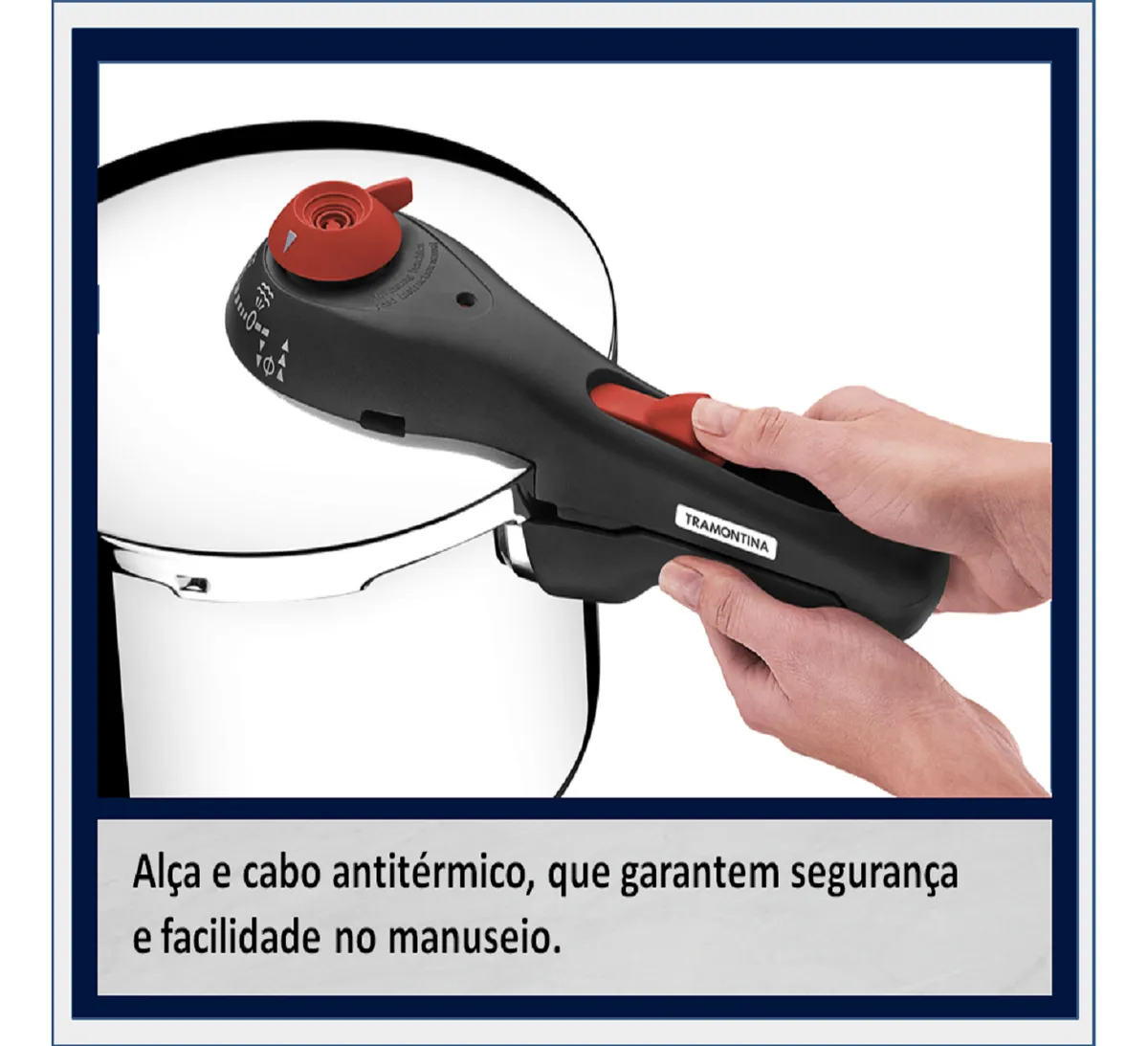 Chegou rápido e bem embalado ! O produto apresenta um acabamento fosco na tampa de pressão e nas bordas das panelas um acabamento cortante, achei perigoso! O tamanho é ideal. Gostei! Recomendo!!